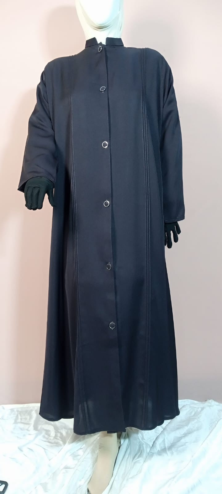 Design: A modern V-neckline paired with a full-length button-down front for a clean, professional look.